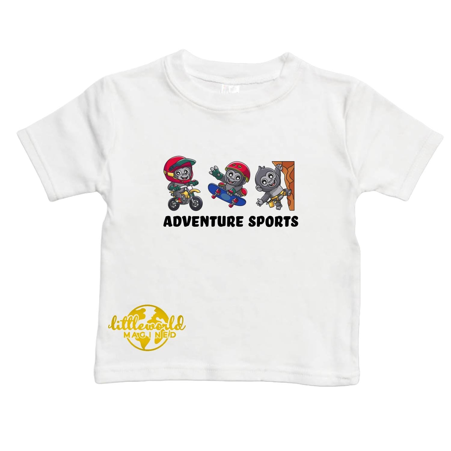 Made from 100% soft ring-spun cotton, this action-packed tee features Malik the Gorilla in full adventure mode. Comes in natural beige and classic white with a vibrantly colored image for everyday daring.